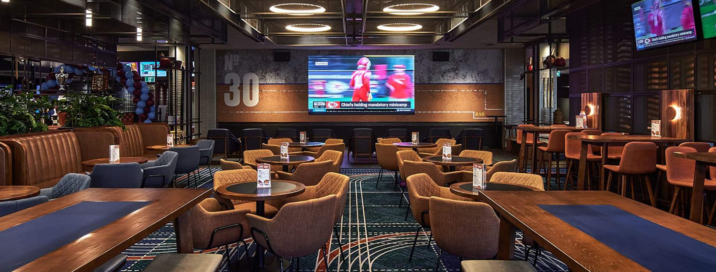 The Sports Arena is your front-row seat to every major game, match, and fight, streamed live on the biggest screens – all with the comfort of food and drinks in hand.